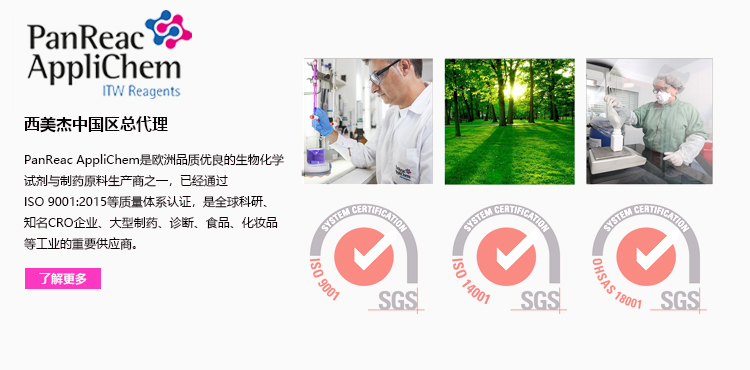 西美杰代理PanReac AppliChem 作為擁有百年歷史的歐洲生物化學試劑與制藥原料生產商,專注提供低內毒素原料,可有效降低生物工藝風險。其產品符合 USP、EP、JP、ChP 等多國藥典標準,具備超低內毒素水平、嚴格質量控制及批次一致性,為科研人員、制藥企業及培養基生產企業提供可靠支持,助力保障藥品安全性與工藝穩定性。 更多>